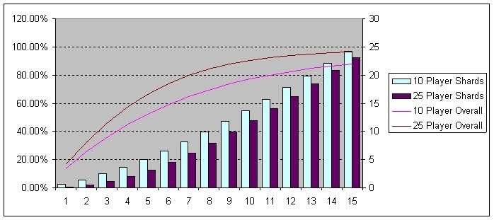 For reference, the bars show the number of shards per raider. Of course because the 10-player raids have less useful loot they have more shards per person. The percentage shows the total percentage of slots filled in the raid. Each person has either 14 or 15 slots, depending on whether they use items in both hands or use a single two-handed weapon.